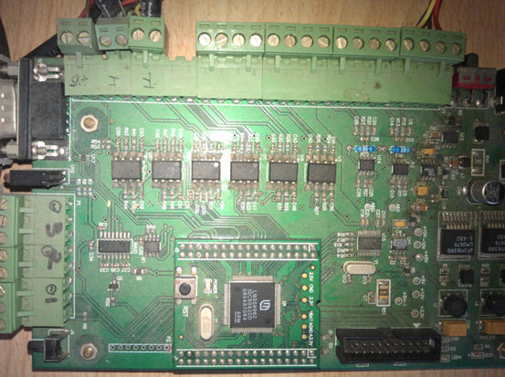 2) 6路数字输入接口,光电隔离,用于开关量输入,外部DB9接口,其中3路接光电编码器,再增加电源接口 5V~10V,选择一个,采用2个DB9接口
